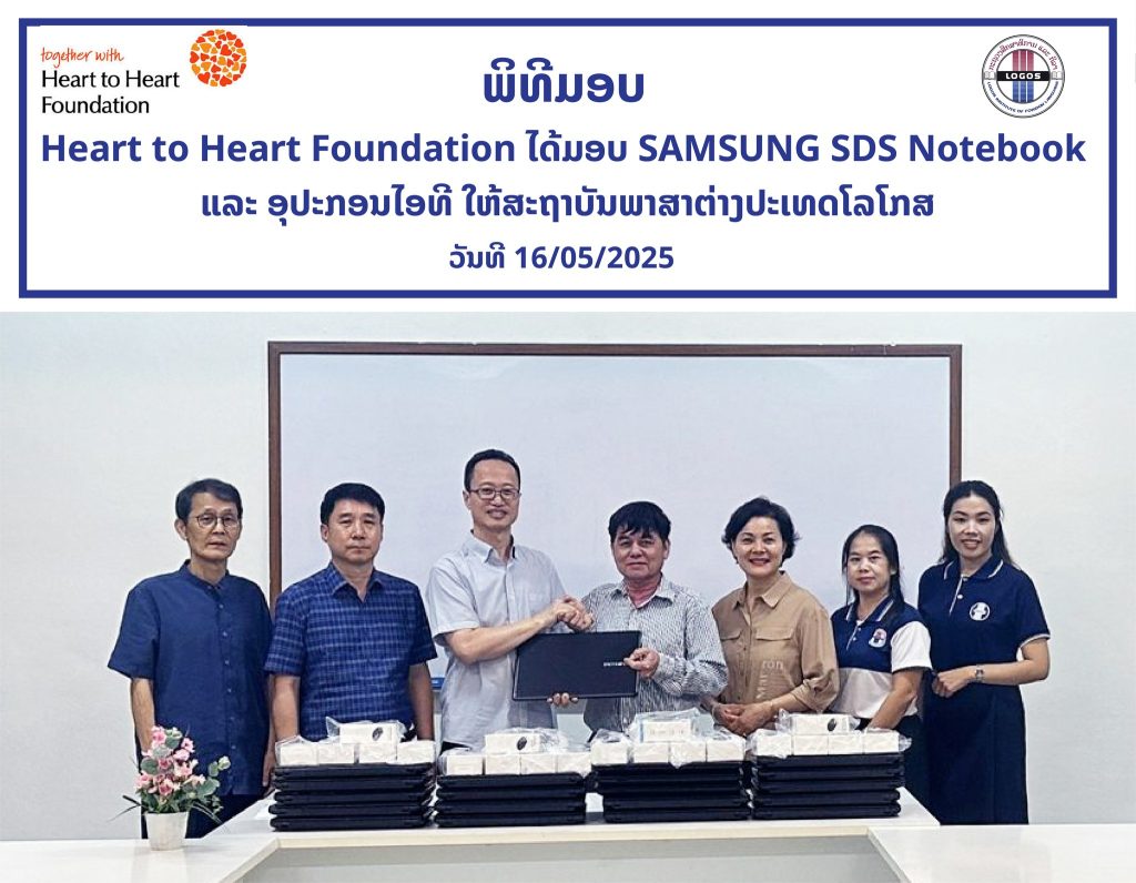 ໃນວັນທີ16 ພຶດສະພາ 2025 ທາງ Heart to Heart Foundation ໄດ້ມອບ Samsung SDS notebooks ຈຳນວນ 20 ຊຸດ ເພື່ອນຳໃຊ້ເຂົ້າໃນການຮຽນ-ການສອນ 📍ສະຖາບັນພາສາຕ່າງປະເທດໂລໂກສ, ບ.ໂພນພະເນົາ, ມ.ໄຊເສດຖາ, ນະຄອນຫຼວງວຽງຈັນ Tel: 021 418120 WhatsApp: 020 92 362 524