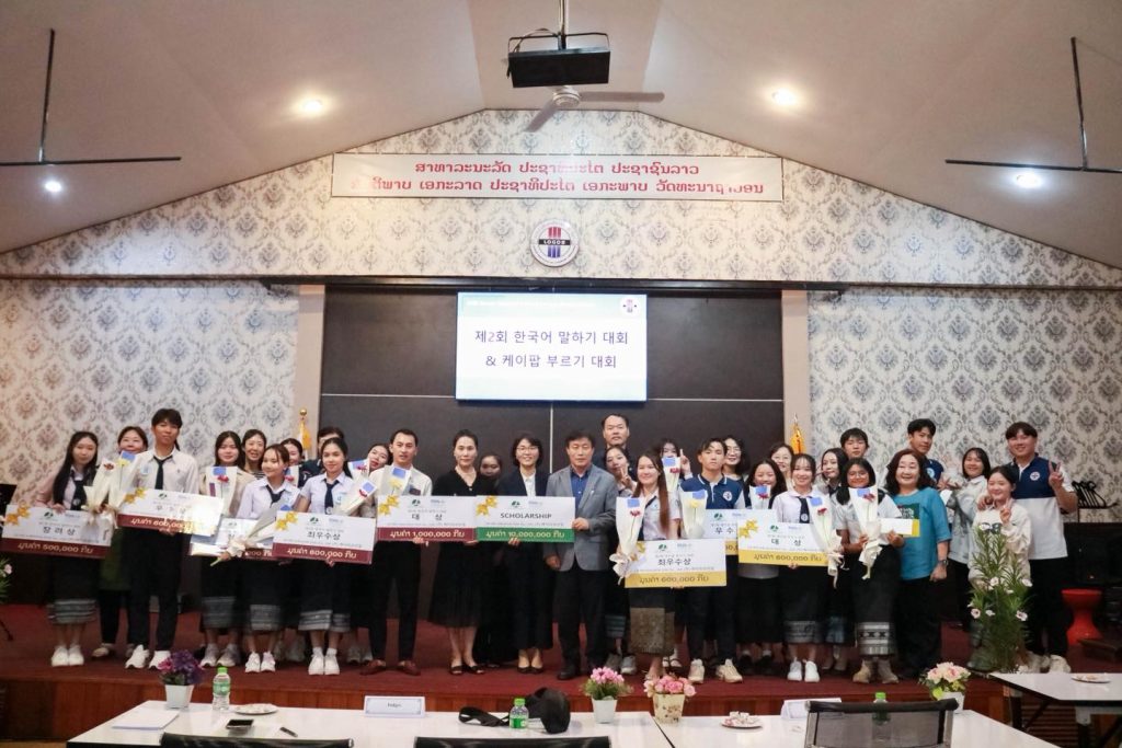 ພາບບັນຍາກາດແຂ່ງຂັນເວົ້າພາສາເກົາຫຼີຄັ້ງທີ2 ແລະ ແຂ່ງຂັນຮ້ອງເພງພາສາເກົາຫຼີ Korean Speaking and K-pop singing contest 2025. ຂອງສະຖາບັນພາສາຕ່າງປະເທດໂລໂກສ